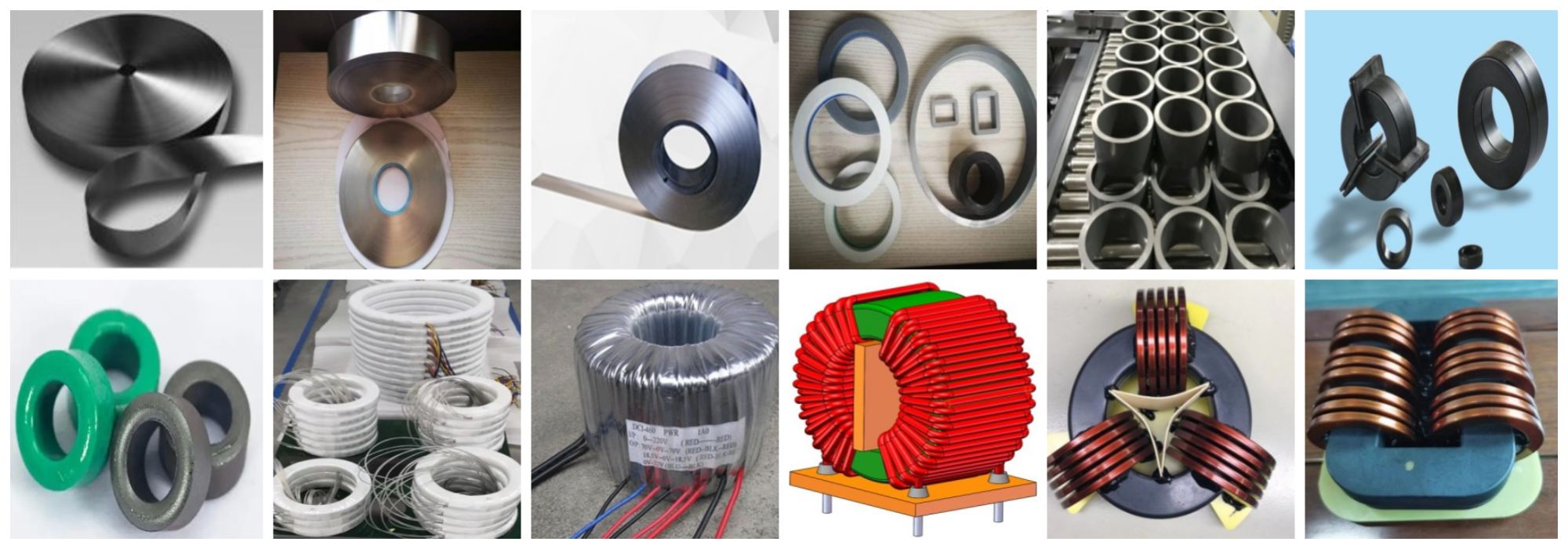Nanocrystalline Magnetic Cores: Wound from 1K107B material, featuring high saturation magnetic flux density, high permeability, and cost advantages over permalloy, it is widely used in transformers, inductors, and communication devices.